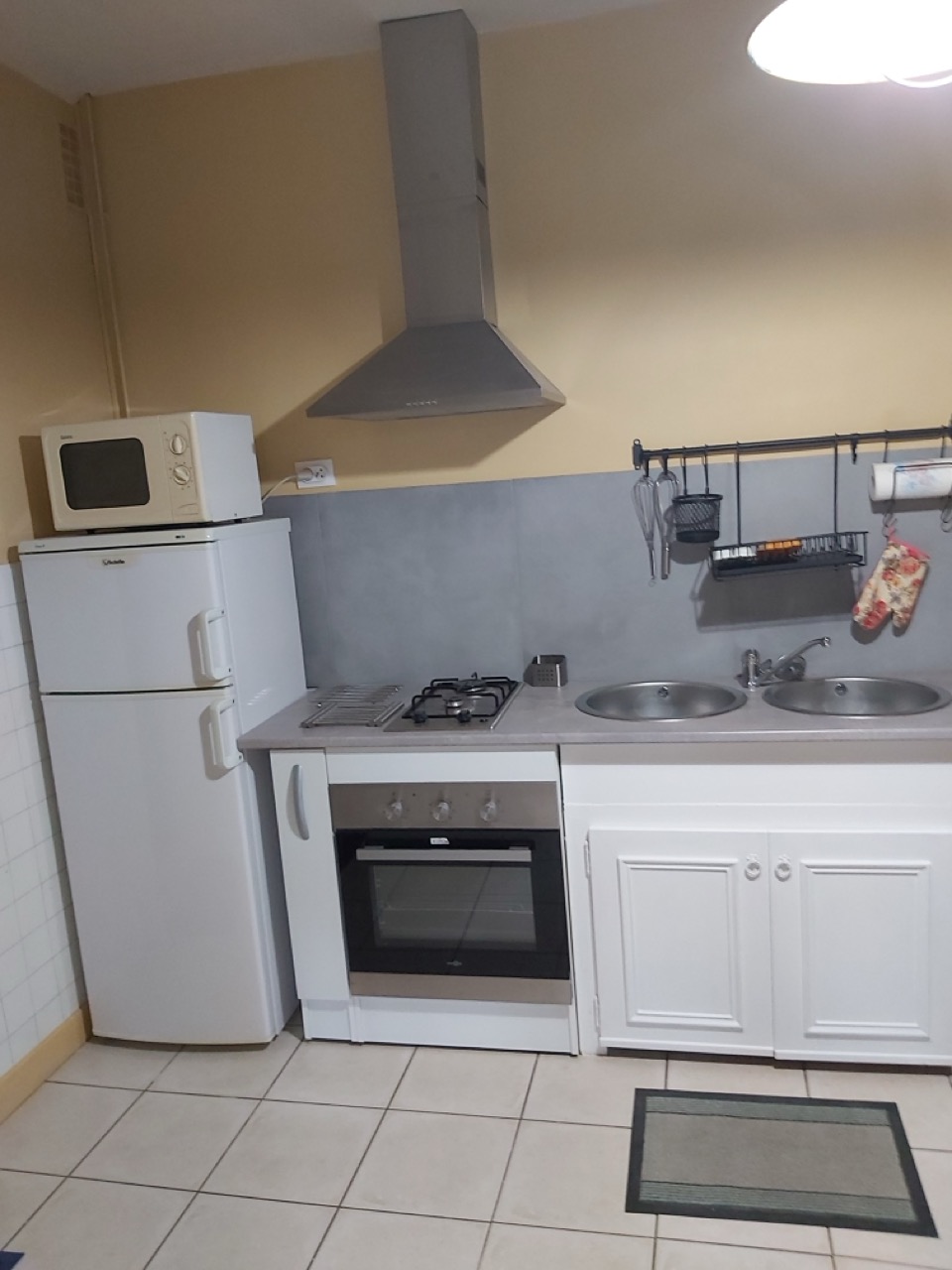 - Equipement de cuisine: Cuisine de 12 m2, cuisinière avec four, micro-ondes, réfrigérateur congélateur, cafetière grille pain etc…