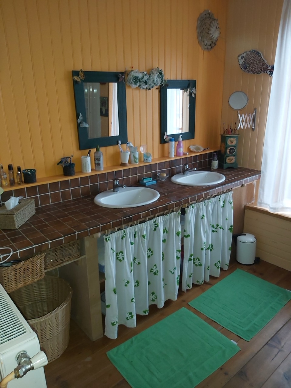 Sanitaire (avec fenêtre) deux vasques baignoires, WC séparé.
