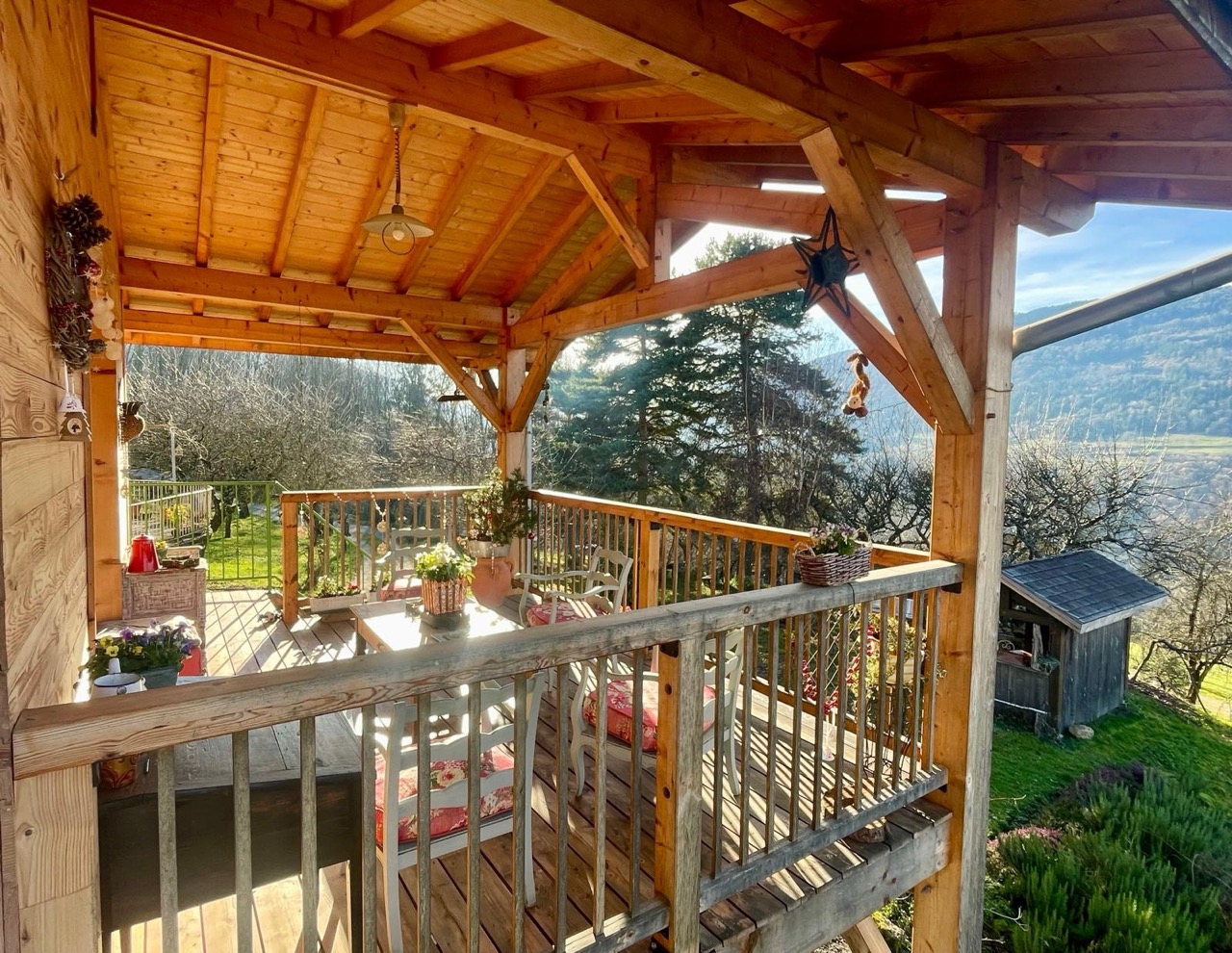 Chalet cosy et spacieux de 75 m2, aménagé dans une ancienne grange entièrement rénovée, sans vis à vis. Blotti à l’écart d’un petit village paisible à 600 m d ‘altitude, à 8 km d’Allevard, sur les contreforts du massif de Belledonne, aux confins de la Savoie.