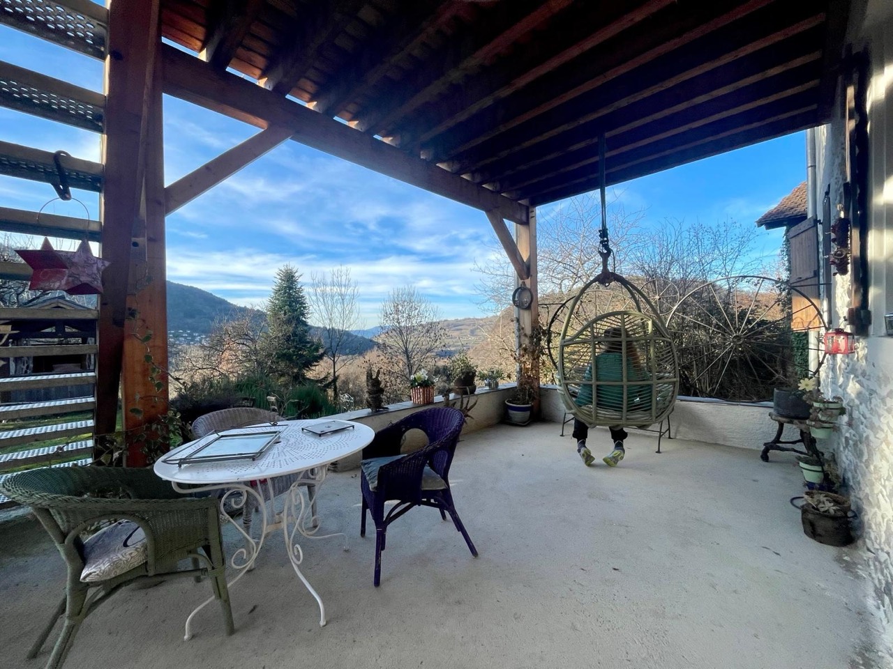 Vous disposerez d’une deuxième terrasse abritée avec balancelle, salon de jardin et ses fauteuils.